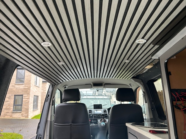 So, as I’ve mentioned before, I was never happy with the interior of van 2 (Stormcrow). I’ve had the benefit of 100% 5/5 reviews this year and much of that has been down to my attention to detail and frankly, ex-FTSE 100 bosses being all over me in my previous life (thanks Scott!). That said, it’s served me well and saw me investing in a brand new made to measure kitchen for me Type 5 camper. That included the most up to date fridge and hob/sink unit. All good. Popped down to see Steve at Liverpool Campervan Conversions to collect the kit. Was an opportunity to touch base again with Kinghorn Campers too – encyclopaedic knowledge of the sector I find myself in. Don’t actually know what I did before they appeared! Here’s a couple of pics of the work on the van so far: